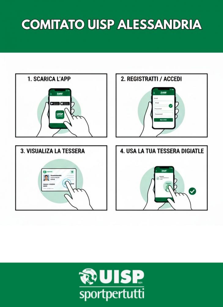 Il Comitato Territoriale UISP Alessandria APS ricorda a tutti i soci che è disponibile l’AppUISP , l’applicazione ufficiale che permette di digitalizzare la propria tessera associativa.