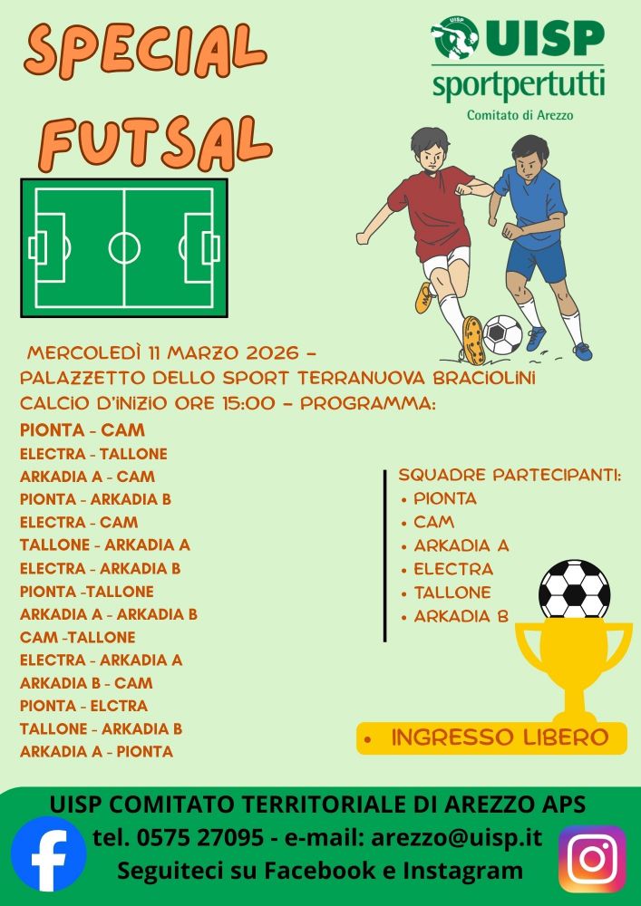 Mercoledì 11 marzo al Palazzetto dello Sport - Terranvuova Braccioli! Calcio d'inizio ore 15:00!