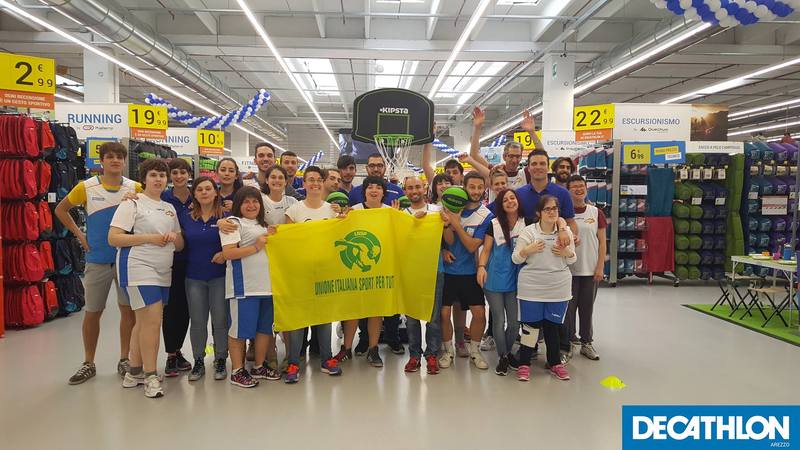 Nel primo giorno i ragazzi disabili, accompagnati dalla Sba Arezzo, si sono uniti ai ragazzi Decathlon e si sono destreggiati in una partita a basket all'interno del negozio (causa maltempo).