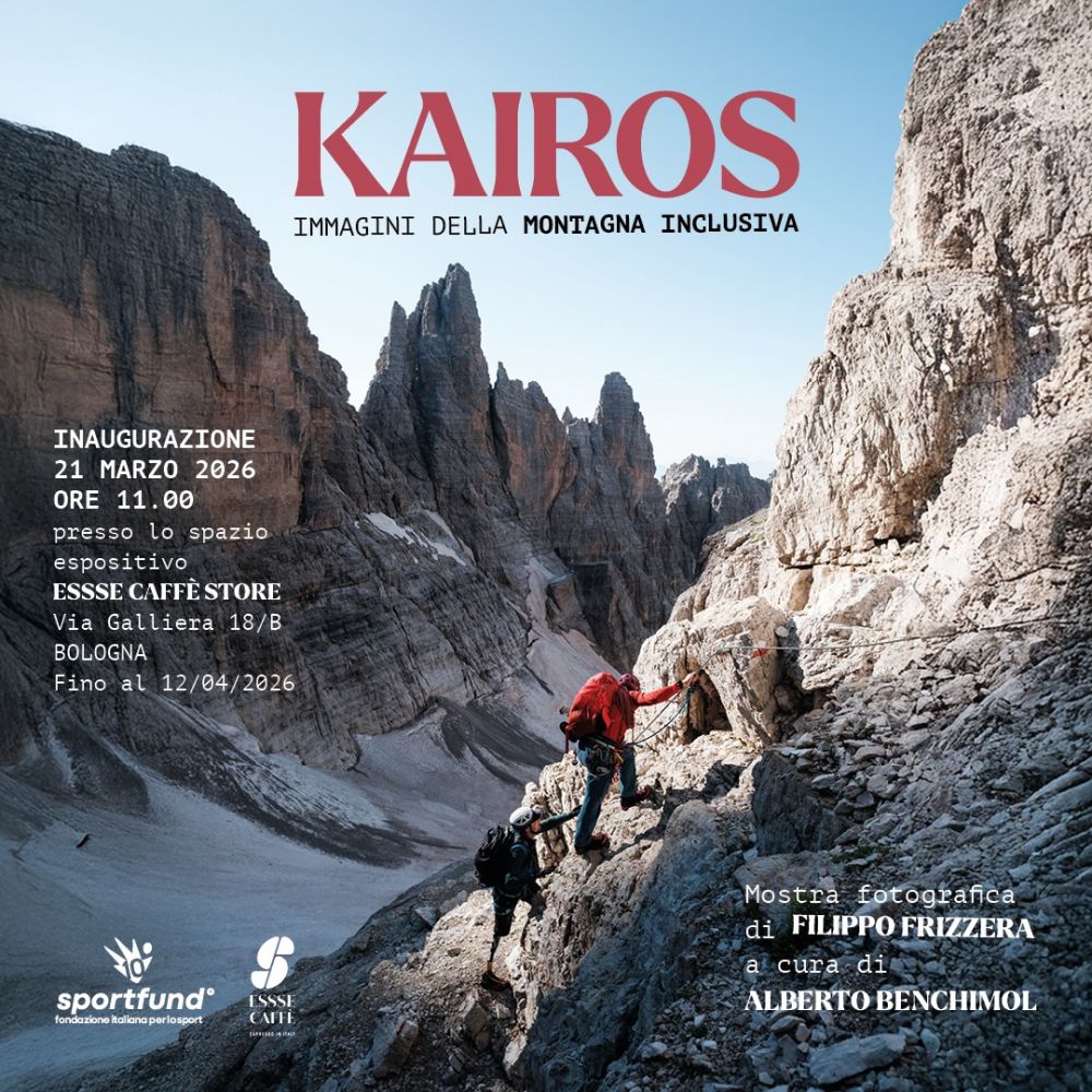 Sabato 21 marzo alle ore 11.00 inaugura a Bologna "Kairos", presso l'Essse Caffè Store di via Galliera 18/b. Promossa da Sportfund Ets e visitabile fino al 12 aprile, è un'emozionante mostra fotografica solidale che celebra l'alpinismo inclusivo e il superamento dei propri limiti sulle Dolomiti.