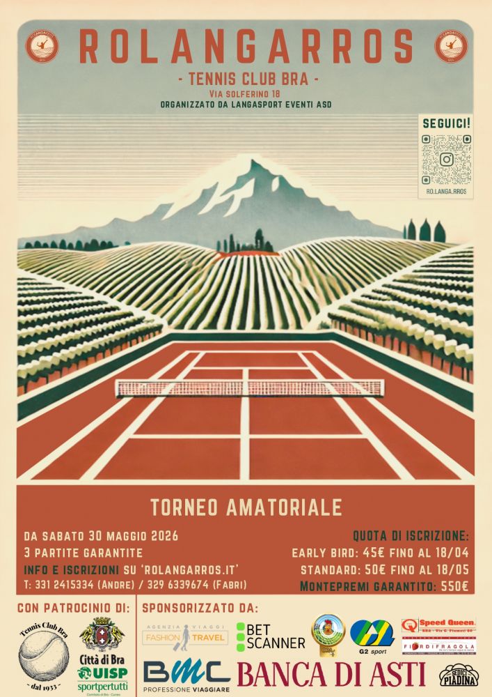 La società A.s.d. Tennis club Bra è lieta di presentare la 6° edizione del RoLANGAross presso i campi della loro sede situata in via Solferino 18, Bra.