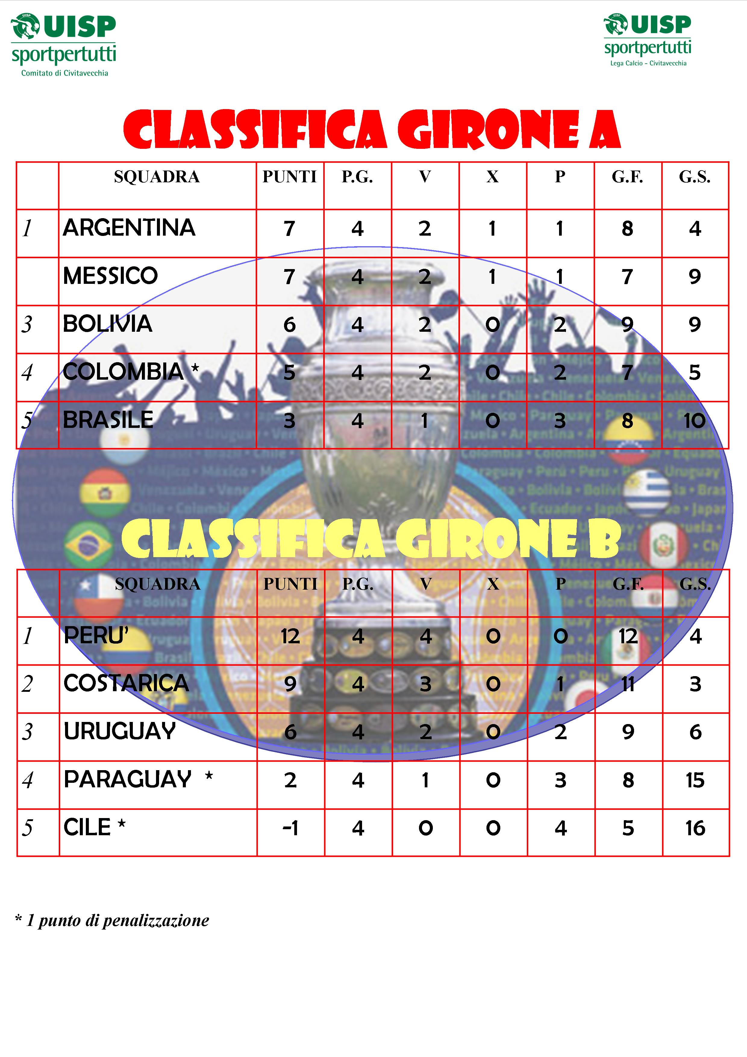 La classifica aggiornata del trofeo "Copa America 2013" di Calcio a 8.