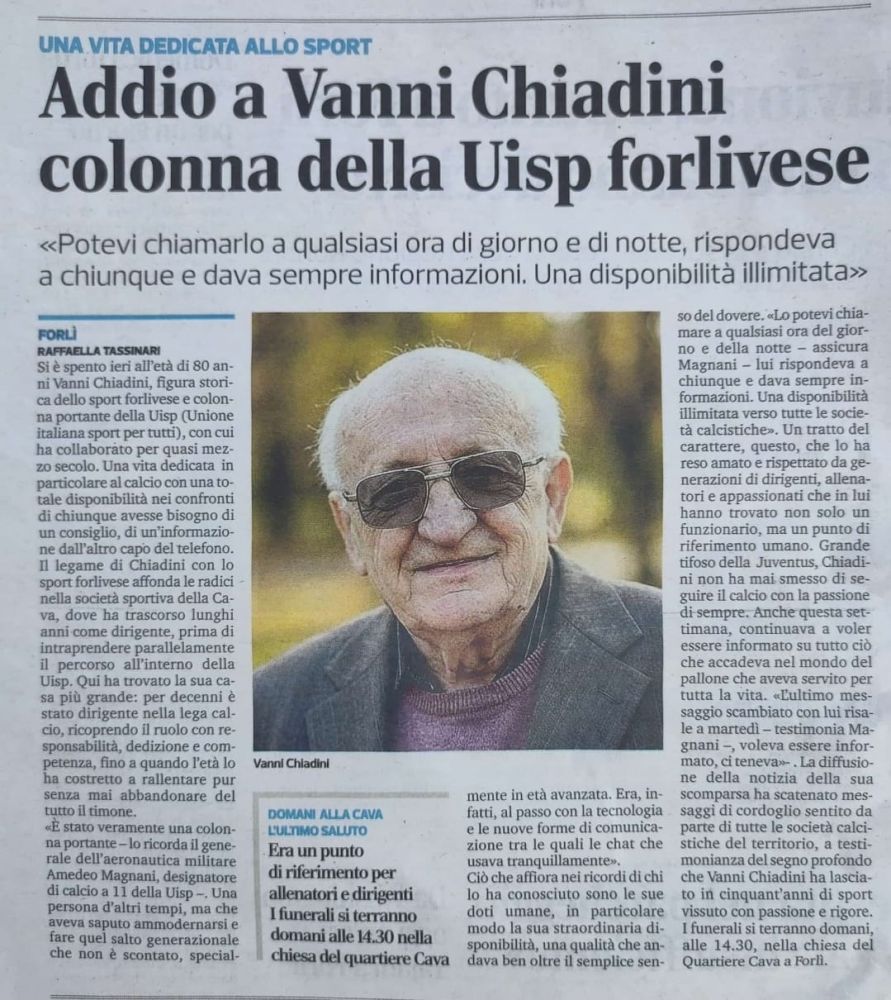 La UISP Emilia Romagna si stringe con profonda commozione al dolore della famiglia Chiadini e degli amici del Comitato di Forlì-Cesena per la perdita del caro Vanni.