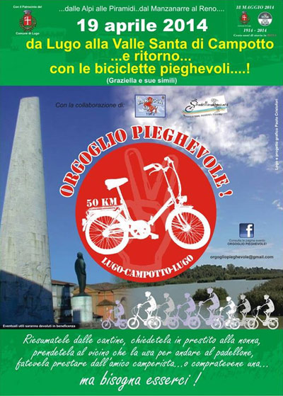 LUGO (RA) - "Tutta colpa di una cena tra amici". Descrive così Paolo Cristofori la nascita di "Orgoglio pieghevole", l'iniziativa portata avanti assieme all'unione ciclistica Baracca che si svolgerà il 19 aprile a Lugo (RA). "Poco prima di Natale - racconta - ero a tavola con altri appassionati di 'ciclo storiche'. Finita la cena ho proposto per il giorno successivo una gita 'digestiva' in Graziella da Lugo a Comacchio e ritorno. Io scherzavo ma tutti hanno insistito per organizzare realmente qualcosa di simile".