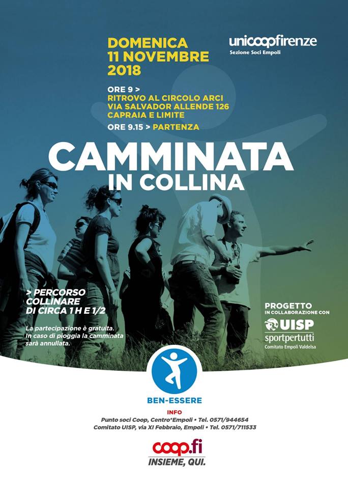 Un nuovo appuntamento con le passeggiate della salute, promosse dalla Uisp Empoli Valdelsa in collaborazione con la sezione soci Unicoop Firenze. L'appuntamento è per domenica 11 novembre nel comune di Capraia e Limite.