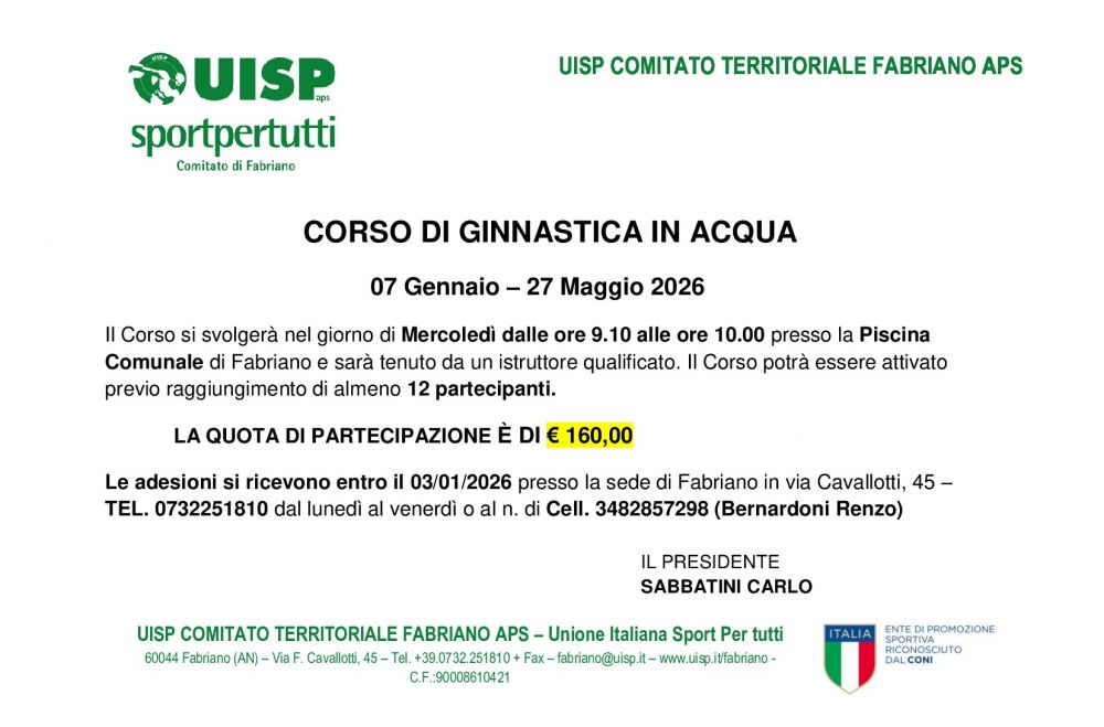 CORSO DI GINNASTICA IN ACQUA