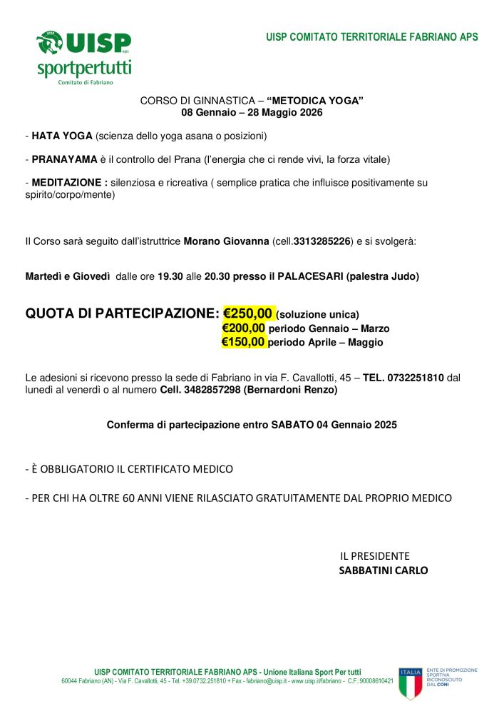 CORSO GINNASTICA "METODICA YOGA"