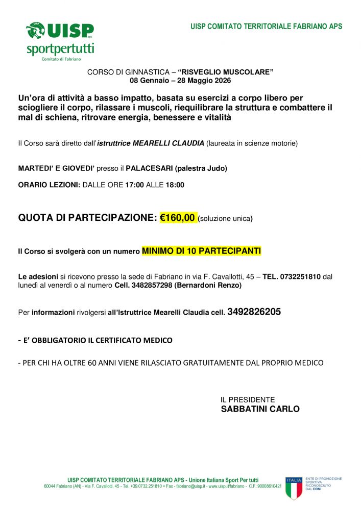 CORSO GINNASTICA RISVEGLIO MUSCOLARE