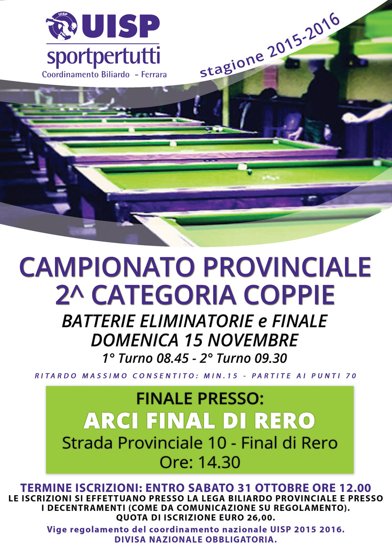 Campionato Provinciale 2^ Categoria Coppie 15 novembre 2015 ARCI Final di Rero