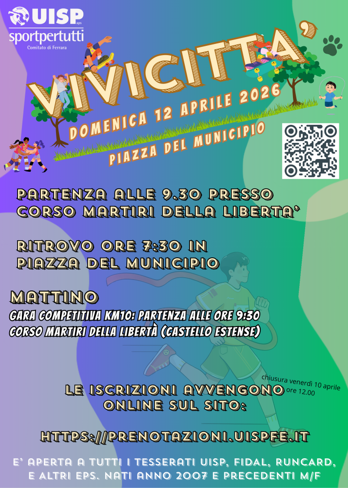 Online sul sito: https://prenotazioni.uispfe.it o sul posto il giorno stesso della gara, presso la sede uisp ferrara in viale cavour 147 il lunedì dalle 15:30 alle 19:00; mercoledì dalle 9:00 alle 12:30; sabato dalle 9:00 alle 12:30 o presso il negozio erregi sport in piazza xxiv maggio 39.