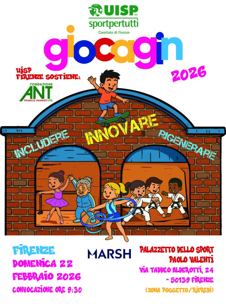 Tutto pronto per l’edizione 2026 di Giocagin: la manifestazione nazionale dell’Uisp che porta migliaia di ginnasti e sportivi nei palazzetti dello sport di tutta Italia, ma anche in piazze e scuole. Il Comitato Uisp di Firenze ha dato appuntamento a domenica 22 febbraio al Palavalenti di via Alderotti, con ingresso del pubblico a partire dalle 9.45 e inizio esibizioni dalle 10.