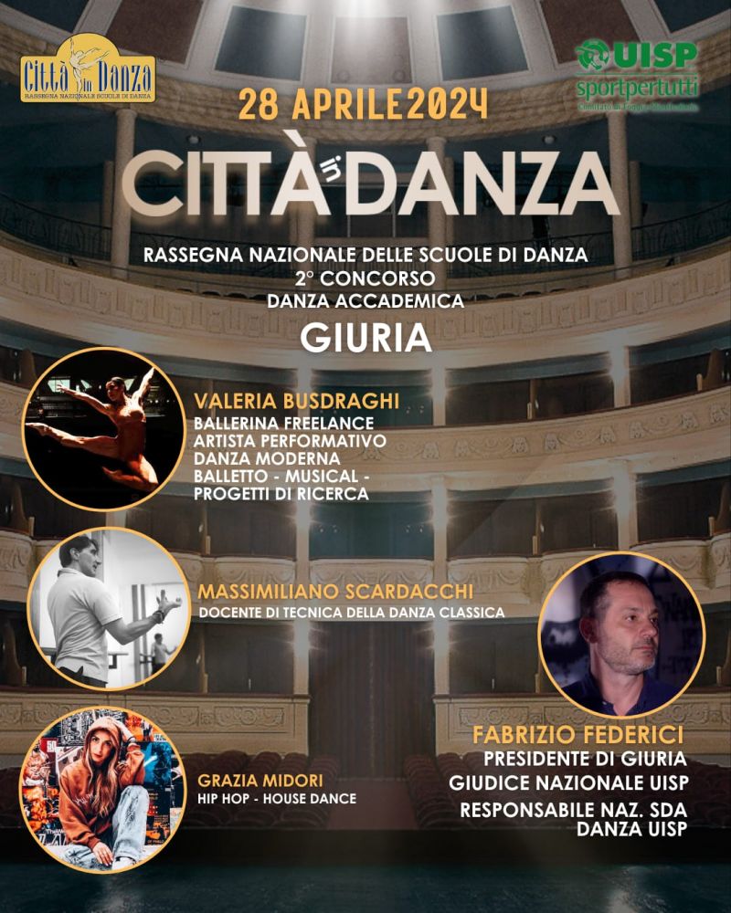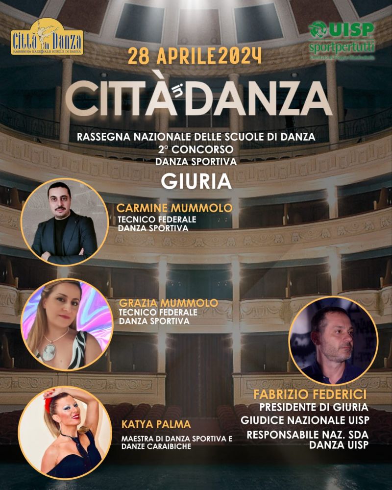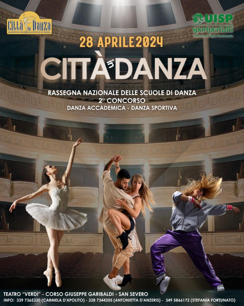 La UISP, Comitato Territoriale Foggia/Manfredonia, indice la seconda edizione del Concorso “Città in Danza”, che si terrà domenica 28 aprile 2024, presso “TEATRO VERDI” di San Severo.