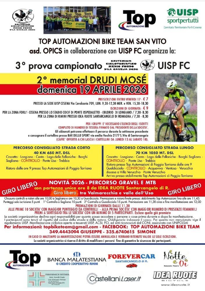 | 19 APRILE 2026 | Medio Fondo Opics Poggio Torriana | Volantino | Link |