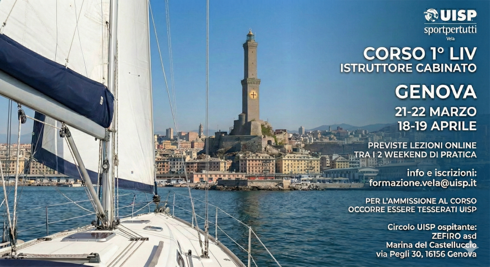 L'A.s.d. Zefiro con base alla Marina del Castelluccio di Genova Pegli ospiterà il corso istruttori vela di 1 livello tenuto da formatori UISP.