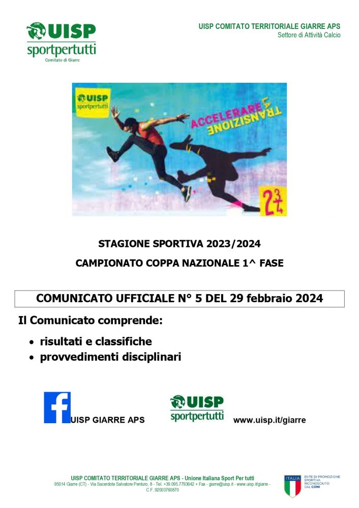 COMUNICATO NR° 5 COPPA