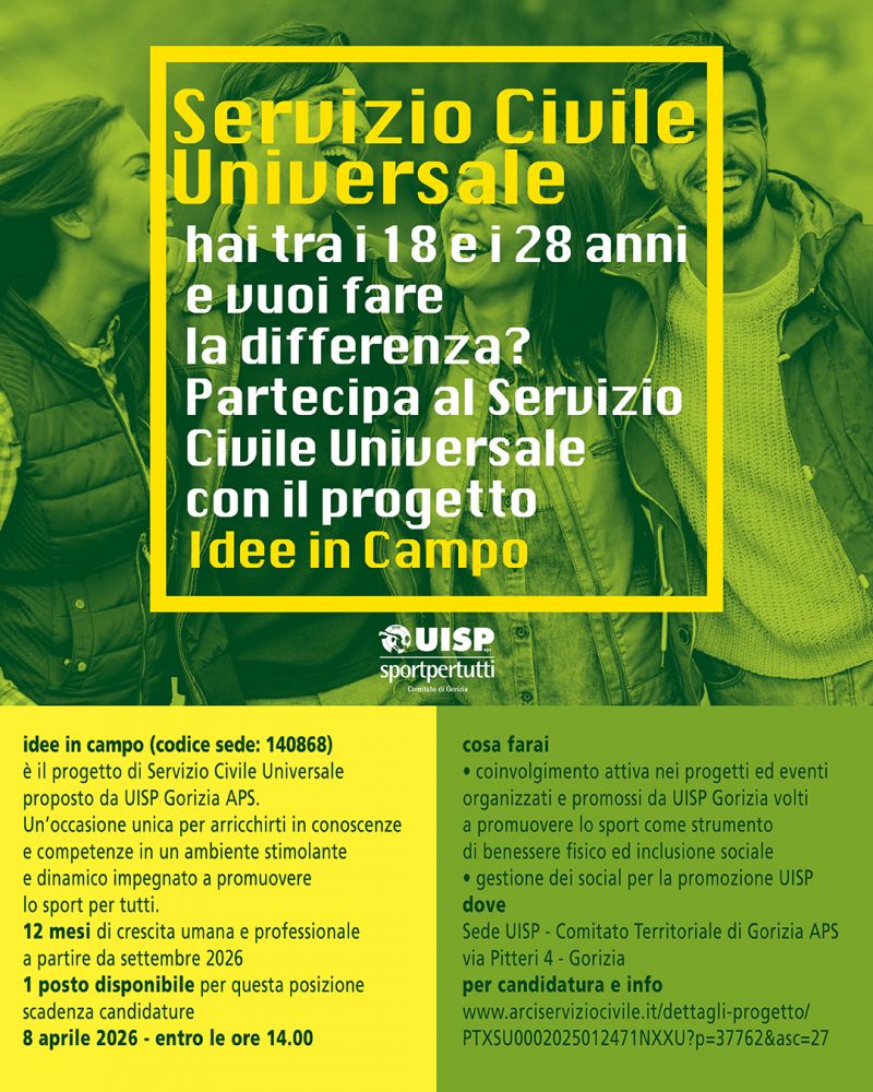 Puoi partecipare al Servizio Civile Universale con il progetto Idee in campo di UISP Gorizia APS.