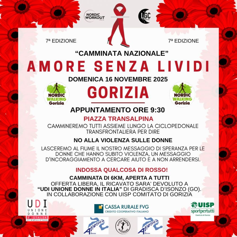 Domenica 16 novembre alle ore 9:30, con partenza da Piazza Transalpina a Gorizia, avrà luogo una camminata per dire no alla violenza di genere.