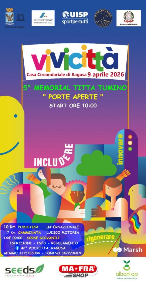 Anche quest'anno il ViviCittà a Ragusa avrà il suo prologo con la nuova edizione di A Porte Aperte, manifestazione podistica che si svolgerà giorno 9 aprile presso la casa circondariale di Ragusa