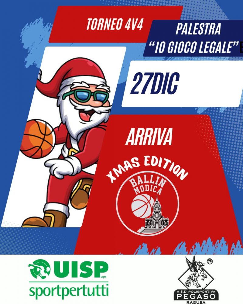 Si svolgerà il 27 dicembre 2025, presso la palestra "Io gioco legale" di Modica (Rg), il Ballin Modica Xmas Edition, torneo di basket 4vs4 organizzato dalla Asd Polisportiva Pegaso di Ragusa in collaborazione con la Uisp degli Iblei
