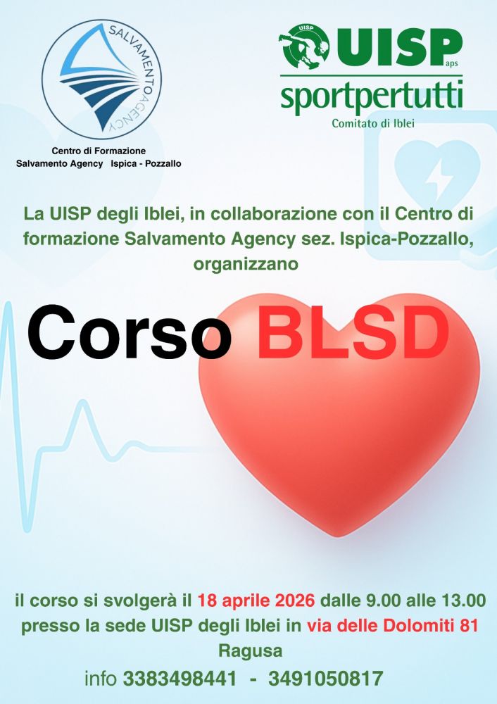 La UISP degli Iblei, in collaborazione con il Centro di Formazione Salvamento Agency, sez di Ispica e Pozzallo, organizzano un corso di primo soccorso BLSD