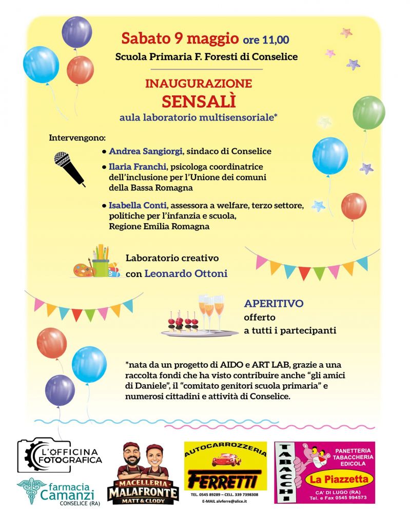Sabato 9 maggio alle ore 11.00 alla Scuola Primaria “Foresti” di Conselice è in programma l’inaugurazione di “Sensalì”, aula laboratorio multisensoriale.