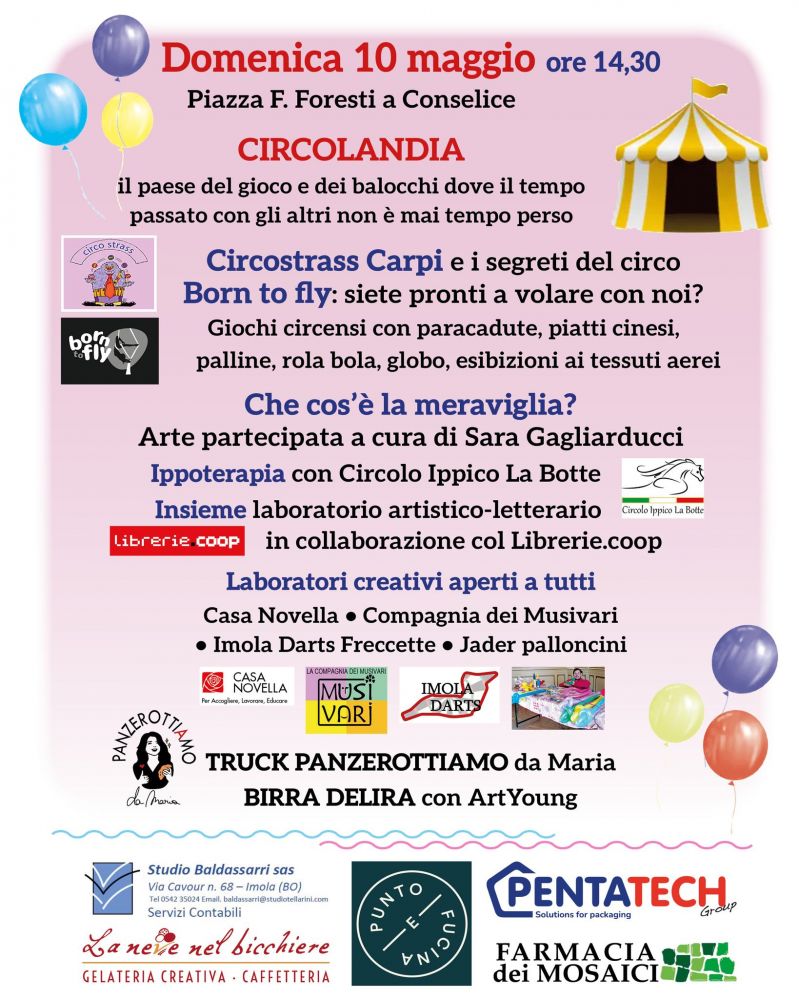 Domenica 10 maggio dalle ore 14.30 in Piazza Foresti a Conselice spazio a “Circolandia”, il paese del gioco e dei balocchi.
