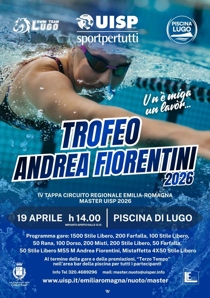 Domenica 19 aprile la piscina comunale di Lugo ospiterà il Memorial Andrea Fiorentini, quarta tappa del Circuito Regionale Master UISP Emilia-Romagna 2025-26.