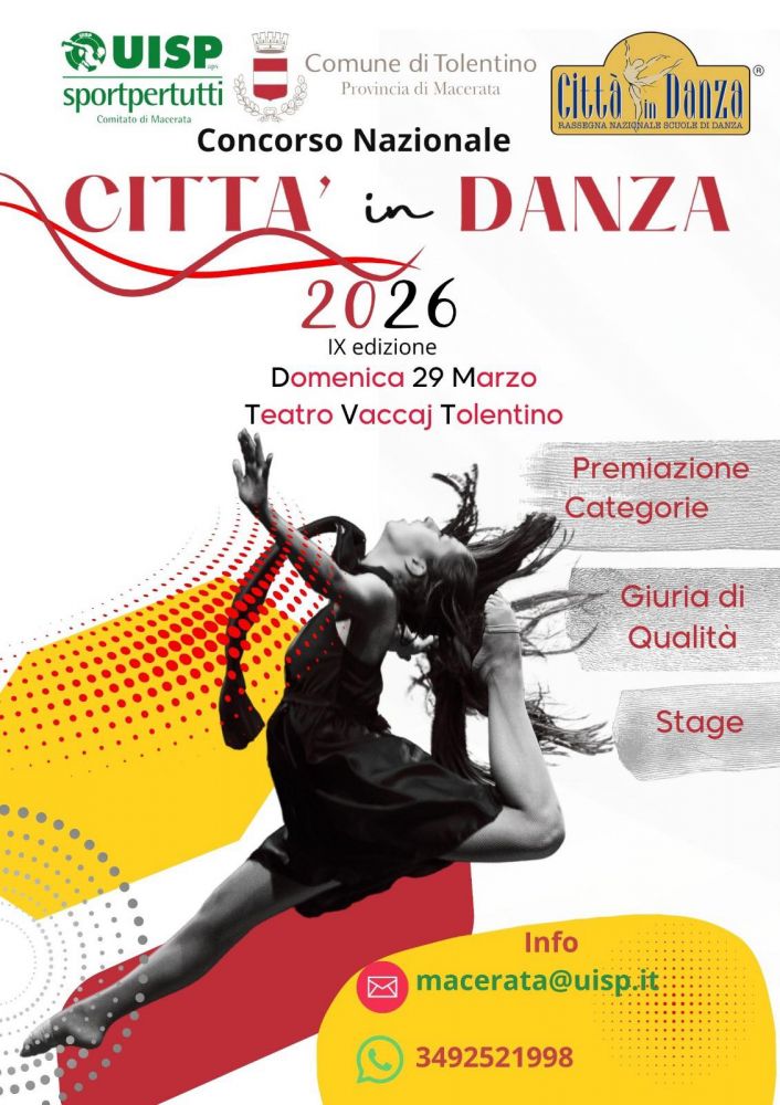 Il grande palcoscenico del Teatro Vaccaj di Tolentino si prepara ad accogliere l’energia, il talento e la passione della danza. Domenica 29 marzo, si terrà la IX edizione del Concorso Nazionale "Città in Danza", uno degli appuntamenti più attesi del panorama coreutico regionale e nazionale firmato UISP.