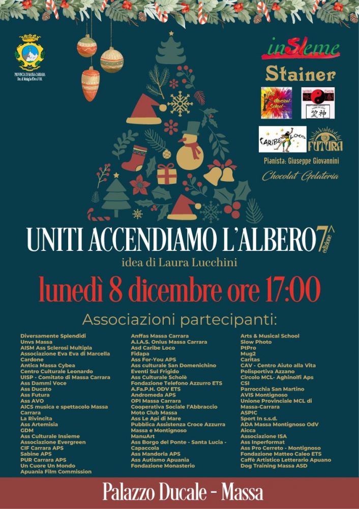 Lunedì 8 dicembre alle ore 17:00, il prestigioso Palazzo Ducale di Massa farà da cornice all’accensione dell’Albero delle Associazioni, un evento promosso dall’Associazione Insieme di Massa con l’obiettivo di valorizzare e unire le realtà associative del territorio.