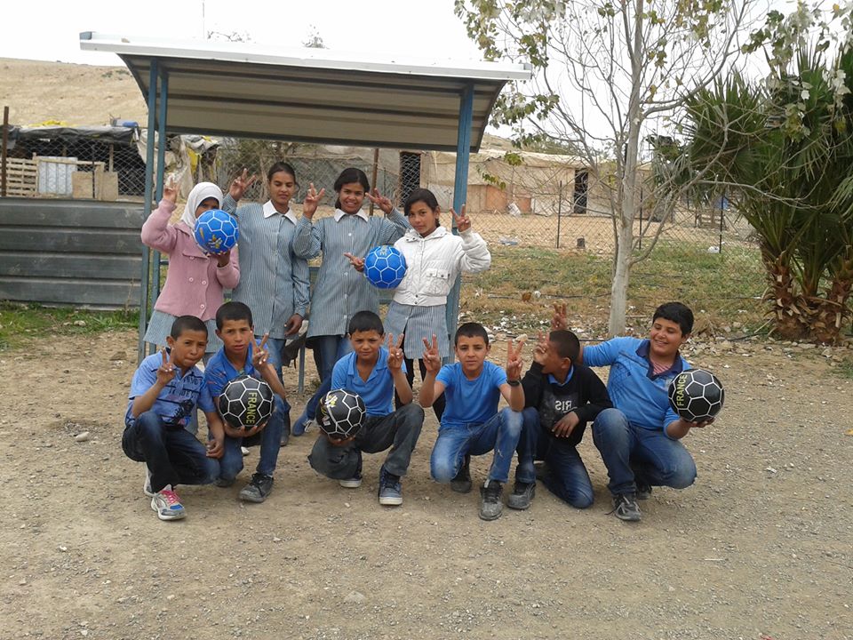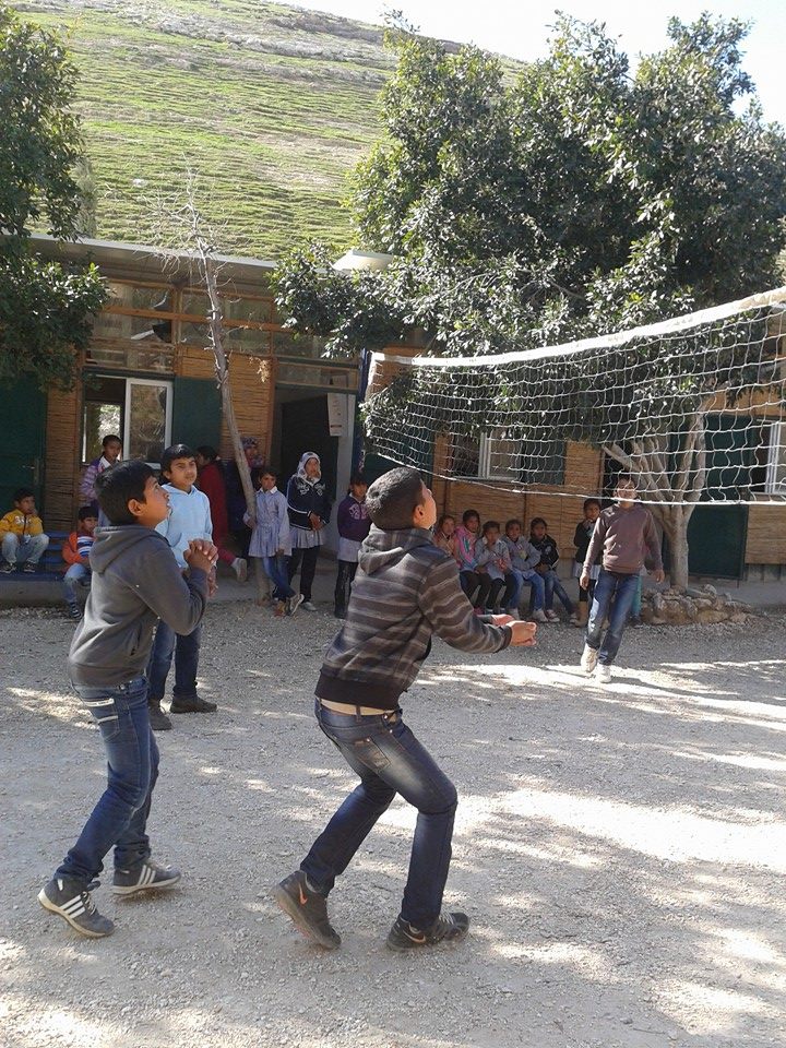 Ho insegnato pallavolo alle ragazze delle medie e sono intervenuta ad organizzare lezioni motorie e giochi sportivi soprattutto con le bambine spesso oco coinvolte nelle attività,per cultura o per abitudine. I maschietti giocando spesso a calcio le escludevano di fatto. Con cordicelle, cerchi, palloni di vario tipo ho avviato dei percorsi didattici- sportivi con tutti, maschi e femmine, cercando di migliorare la coordinazione, i riflessi, il rispetto delle regole, etc. collaborando sempre con il loro maestro di educazione fisica, il quale mi suggeriva il materiale necessario da portare ogni volta. Un mese e' un periodo breve, ma le mie possibilita' economiche erano molto ridotte essendo rimasta senza stipendio per 2 mesi. Alla fine del mese ho organizzato con i maestri un incontro di calcio che credo rimarra' epico, fra i ragazzi delle 2 scuole jahalin, quella di Khan al Ahmar (scuola di gomme ) e quella di Abu Hinde (scuola di bambu). Essendo distanti, per raggiungere un vero campo di calcio (presso l'Universita di Abu Dis) ho dovuto noleggiare 5 pulmini per tutta la mattina (fortunatamente il campo era offerto dall universita'). I ragazzi e i maestri stessi erano entusiasti di vederli giocare per la prima volta in un campo vero, visto che vivono fuori dal mondo, in valli deserte (NB Gli studenti delle due scuole gestite da Vento di Terra sono in prevalenza provenienti dalle comunità beduine locali). La partita e' stata fanatastica con una pioggia di gol...risultato 12-9 per i ragazzi di Khan al Ahmar... Ho individuato 2 ragazzi con talento e predisposizione ed ho comprato per loro 2 paia di vere ed originali scarpe di calcio. Uno aveva le lacrime agli occhi...basta cosi poco a farli felici. Vivono tutti con l'incubo della deportazione da parte di Israele che vuole portar via quelle terre e dichiararle aree militari per poi costruire gli insediamneti dai quali sono circondati e perseguitati. Vivono in baracche e spesso non hanno acqua ed elettricita' rubate dalle colonie vicine...un vero incubo.