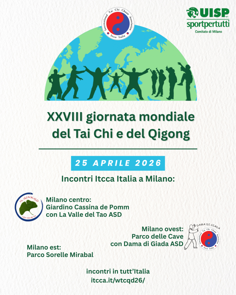 L’iniziativa, promossa da Itcca Italia insieme alle associazioni La Valle del Tao e Dama di Giada, propone una mattinata di pratica gratuita e accessibile a tutte e tutti, a partire dalle ore 10, in contemporanea in tre punti della città.