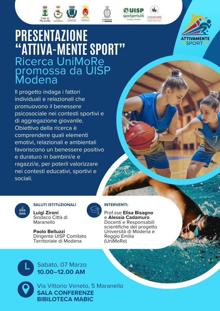 QUI IL VOLANTINO col dettaglio dell'evento nel quale la ricerca sarà presentata alla presenza del sindaco di Maranello, Luigi Zironi, del dirigente Uisp Modena Paolo Belluzzi e delle professoresse Elisa Bisagno e Alessia Cadamuro che hanno curato lo studio.