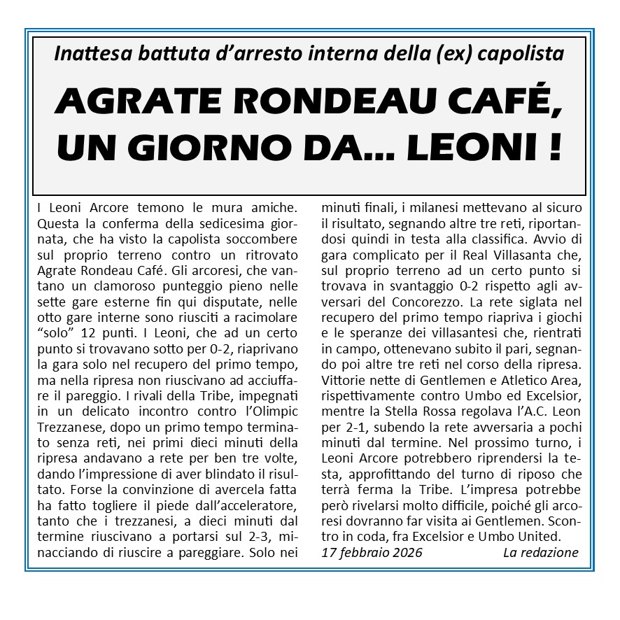 e si giochera' sempre sul campo sintetico di Arcore