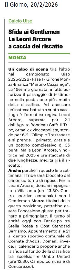 Notizie Settore di Attività Calcio MONZA BRIANZA