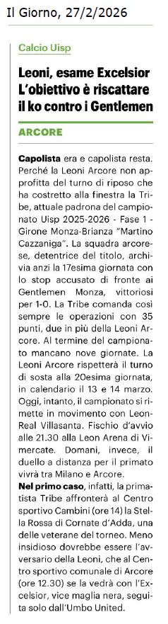 e si giochera' sempre sul campo sintetico di LESMO.