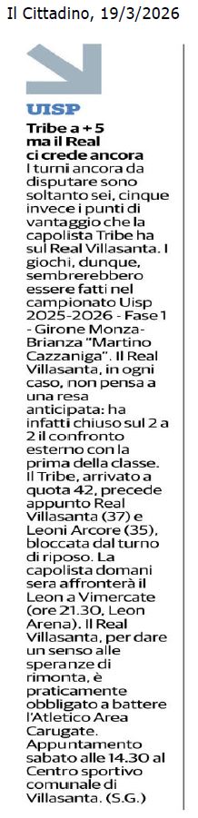 e si giochera' sul campo sintetico di VILLASANTA.