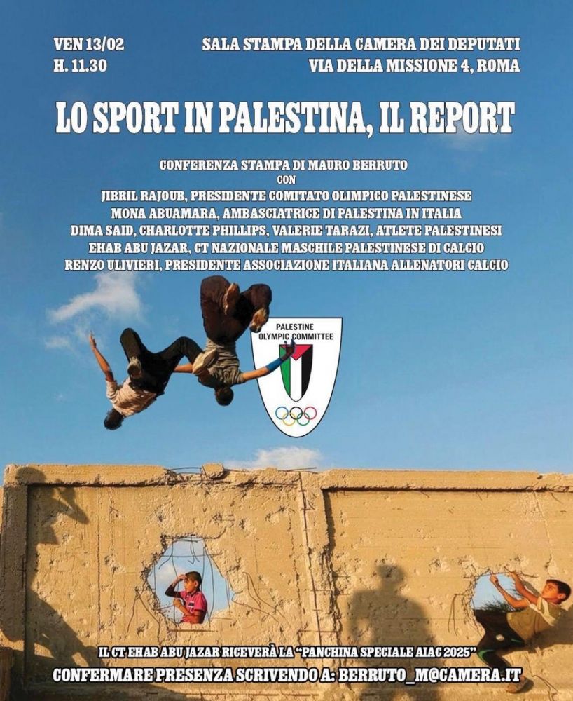 "Ed io sono qui a portare un messaggio rivolto al popolo italiano, al Parlamento italiano, al Ministero per i giovani e lo sport, a alle istituzioni, alla Federazione Italiana Gioco Calcio anche a livello europeo all'Europa, alla FIFA, al Comitato Olimpico. E l'appello che lanciamo affinché tutte queste tutti possano fare qualsiasi cosa sia possibile per garantire il diritto a praticare sport, per ricostruire le infrastrutture e gli impianti sportivi in Palestina, per la partecipazione della Palestina in tutte quante le competizioni internazionali perché anche il Campionato di calcio e gli altri eventi sportivi normali si possono realizzare all'interno del del territorio palestinese, in infrastrutture adeguate e secondo i principi della Carta di Roma. Così come avviene per tutti gli altri Paesi del mondo". ( a cura di I.M.)