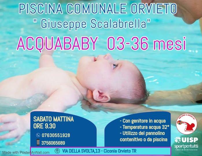 La Piscina Comunale di Orvieto "Giuseppe Scalabrella" riapre le porte ai giovanissimi nuotatori con il programma Acquababy, un'attività pensata specificamente per i bambini di età compresa tra i 03 e i 36 mesi. Il corso non è solo un primo approccio all'acqua, ma un momento di profonda connessione tra il bambino e la famiglia: le lezioni prevedono infatti la presenza del genitore in acqua. Per garantire il massimo comfort dei piccoli, la temperatura dell'acqua è mantenuta costante a 32°C.