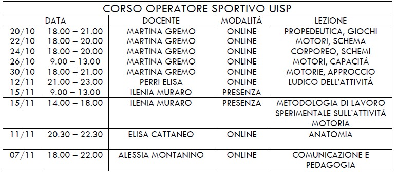 RICORDIAMO CHE CHI NON È IN POSSESSO DI ALCUN BREVETTO UISP DOVRÀ FREQUENTARE LE UNITÀ DIDATTICHE DI BASE PER COMPLETARE LA FORMAZIONE. DI SEGUITO IL LINK DOVE TROVARE LE INFORMAZIONI: https://www.uisp.it/piemonte/pagina/unit-didattiche-di-base