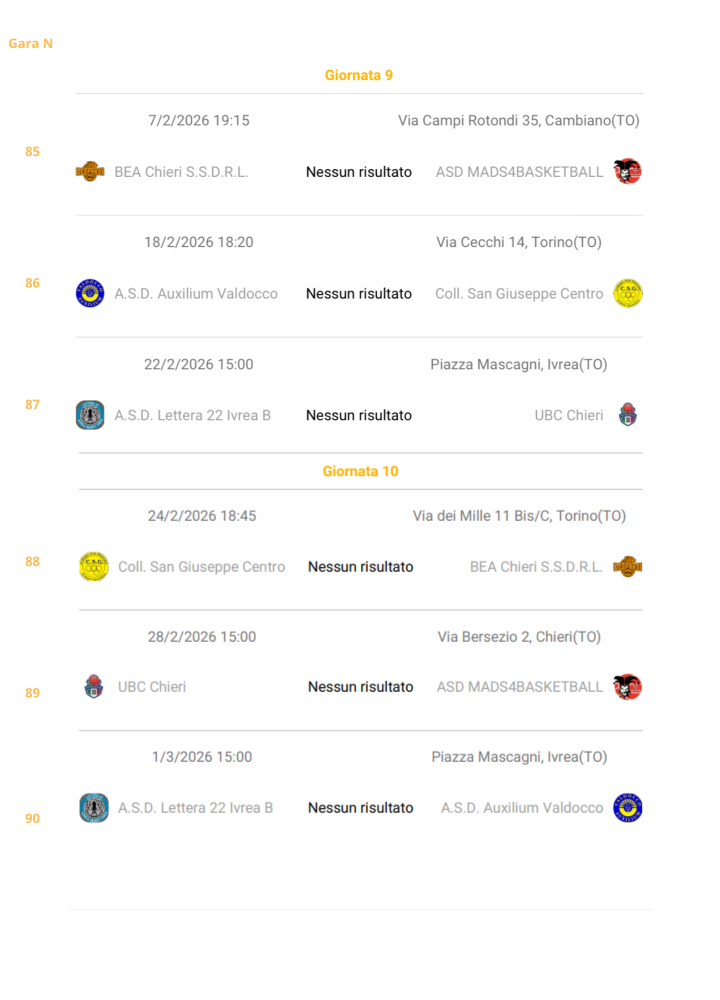 Stagione Sportiva 25-26 _ Calendario Categoria Under 17