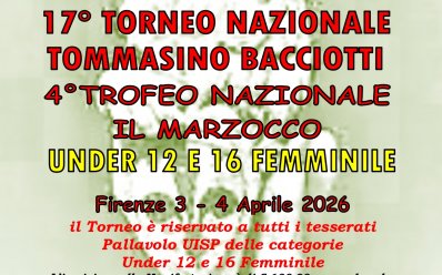 Torneo Uisp “Tommasino Bacciotti” 2026, per Under 12 e Under 16 Femminile a Firenze il 3-4 aprile 2026