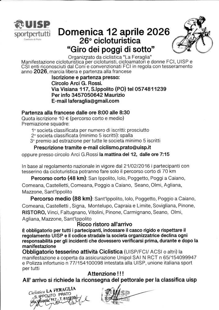 26° Giro dei Poggi di sotto domenica 12 aprile 2026