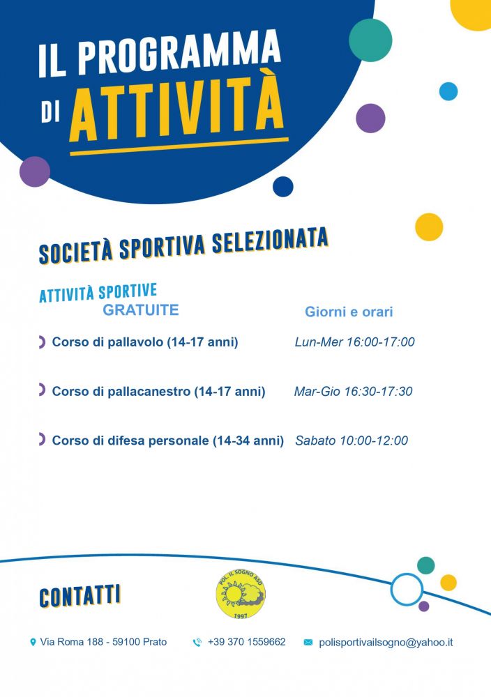 Cell. / whatsapp 370 1559662 - e-mail: polisportivailsogno@yahoo.it