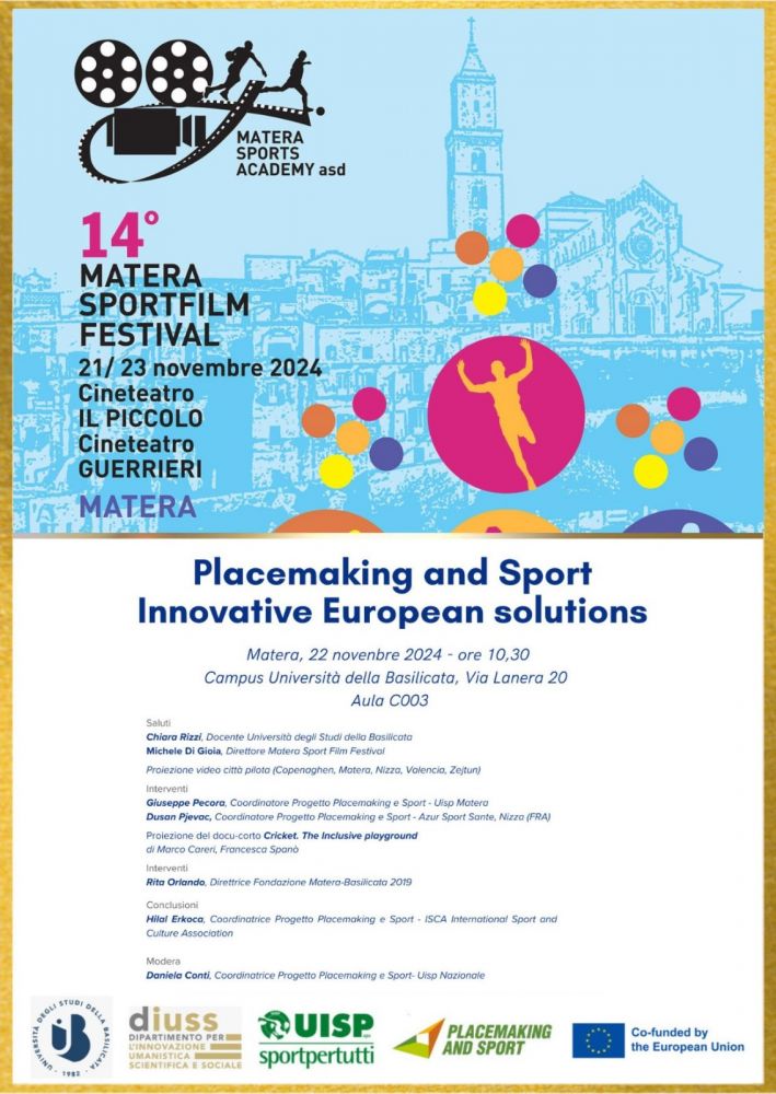 Venerdì 22 novembre, nell’ambito del Matera Sport Film Festival, si terrà l’evento finale del progetto “Placemaking and sport - Innovative European solutions”, finanziato dalla Comunità europea, di cui Uisp è partner.