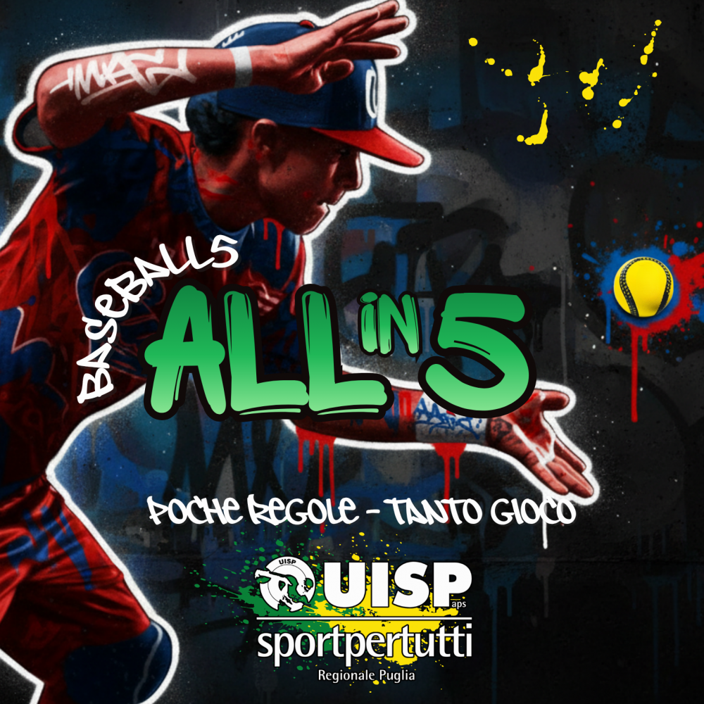 Una disciplina dinamica e accessibile,il  Baseball5 è la versione urbana del baseball classico: si gioca con una semplice pallina di gomma e richiede rapidità, precisione e spirito di squadra. Il progetto, coordinato da Antonio Maggio, nasce con l'intento di portare in Puglia una disciplina giovane e trasversale, capace di riempire gli spazi sportivi di energia e partecipazione.