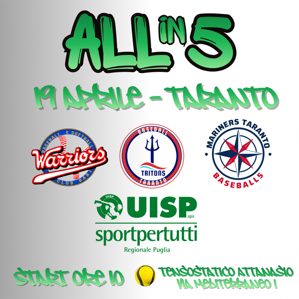 ALL IN 5: Domenica 19 aprile il debutto a Taranto del Baseball5 UISP