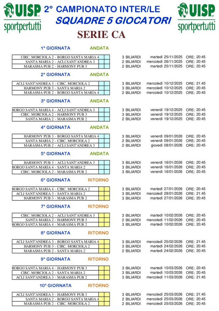 CAMPIONATO A SQUADRE 5 GIOCATORI 2025/2026