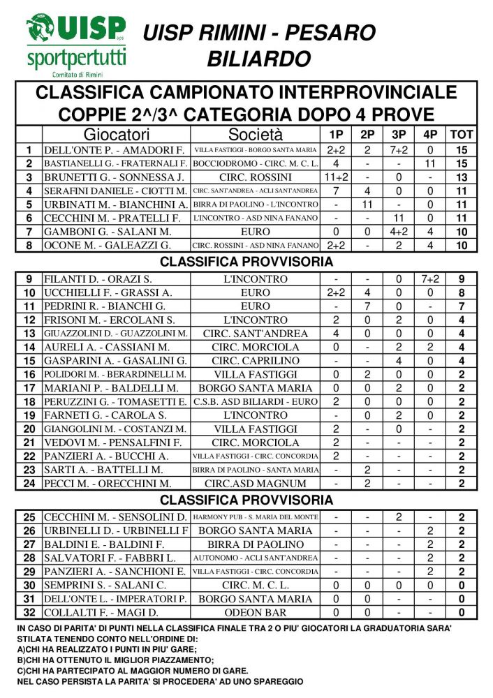 CLASSIFICA INTERPROVINCIALE COPPIA