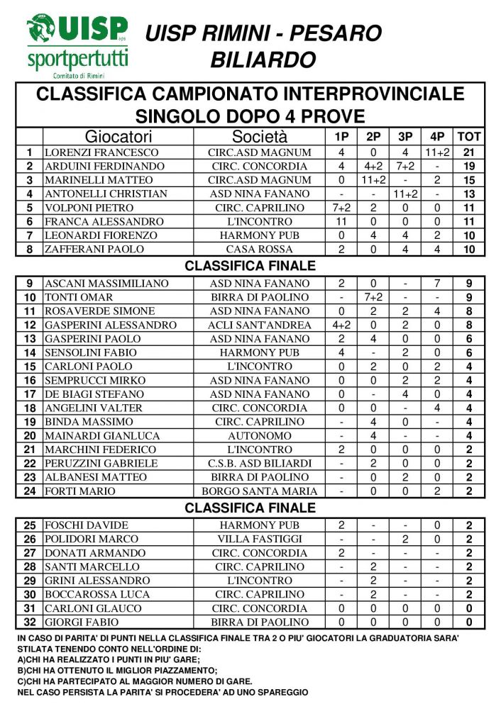 CLASSIFICA INTERPROVINCIALE SINGOLO