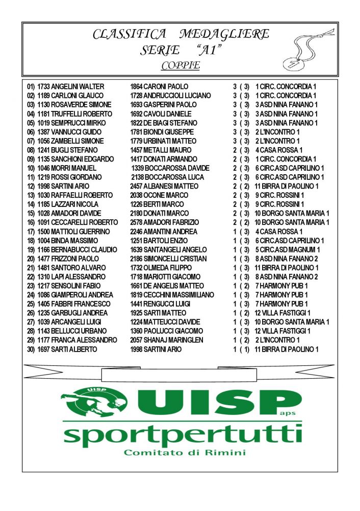 CLASSIFICA INTERPROVINCIALE COPPIA